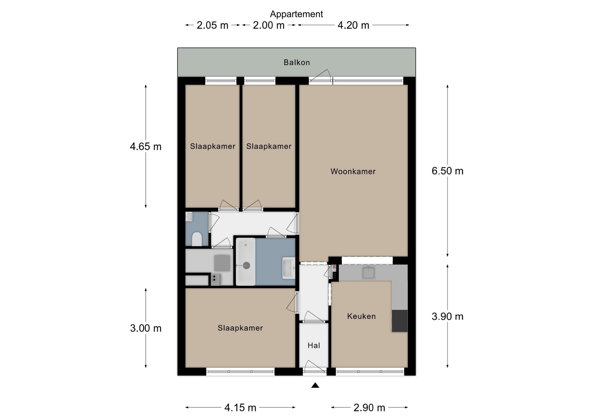 Woonkamer (6,50 x 4,20 m), alwaar toegang tot het balkon.